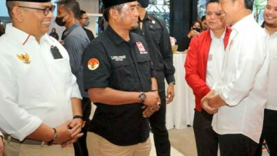 Ketua Umum DPP APKASINDO Dr. Ir. Gulat ME Manurung, MP., C.IMA., C.APO, didampingi Dewan Penasehat DPP APKASINDO, K.H T. Rusli Ahmad., SE., MM dan Sekretaris Jenderal DPP APKASINDO Dr cn. Rino Afrino, ST., MM di Hotel Novotel Pekanbaru.