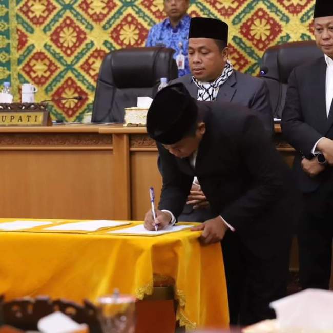 Kesempatan rapat paripurna mengesahkan APBD Kabupaten Pelalawan tahun depan sebesar Rp, 1,8 Triliun Rupiah atau lengkapnya APBD Kabupaten Pelalawan sebanyak Rp.1.861.294.345.000,- ( Satu Triliun Delapan Ratus Enam Puluh Satu Milyar Dua Ratus Sembilan Puluh Empat Juta Tiga Ratus Empat Puluh Lima Ribu).