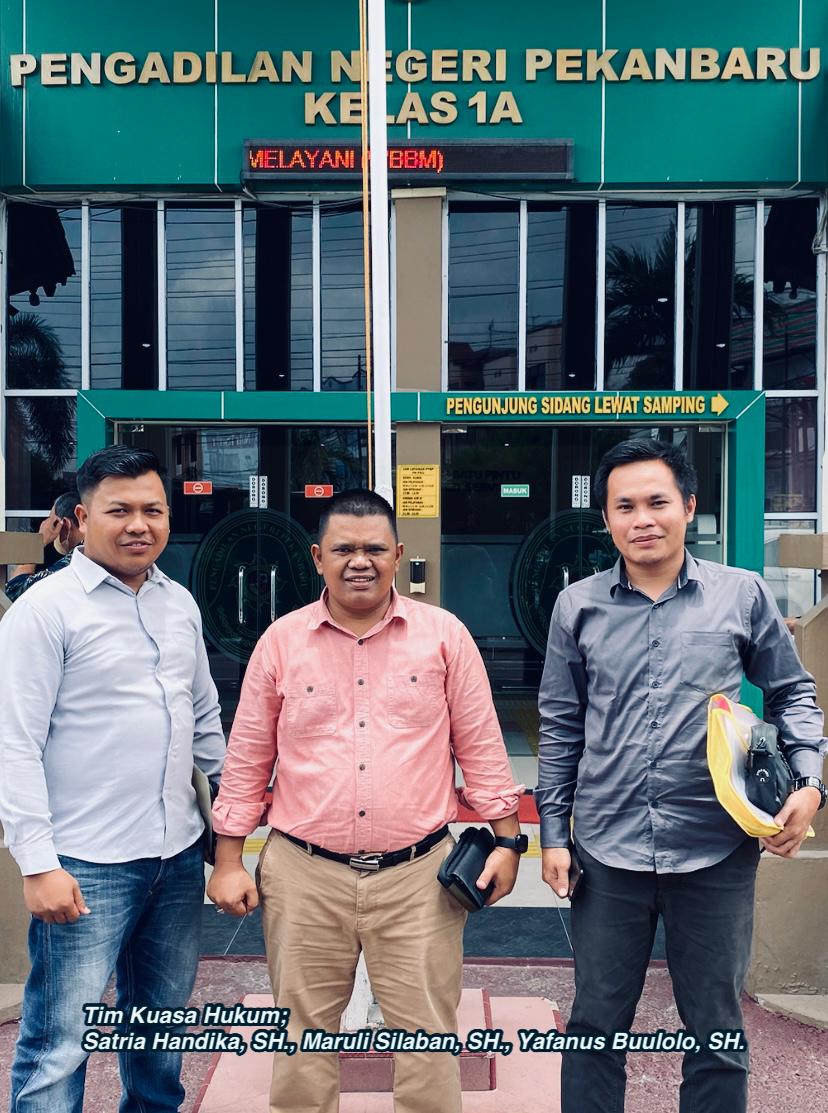 Maruli Silaban, SH. dkk, sebagai Kuasa Hukum dari Penggugat saat berbincang dengan awak media di Kantor Pengacara Maruli Silaban & Partners, menyatakan bahwa sejak awal permasalahan sangat terang benderang, sebab rujukan materi gugatan adalah Putusan Pengadilan Negeri Pelalawan nomor 59/Pid.Sus/2020/PN Plw.