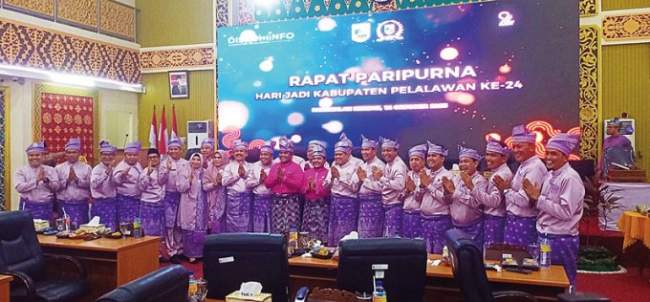 Lanjutnya, sehingga kemudian dijadikan sebagai pedoman dalam menjalankan roda pemerintahan di Negeri Seiya Sekata ini. “Jadi, dari pertama dibentuknya Kabupaten Pelalawan pada 1999 hingga saat ini telah berusia 24 tahun, DPRD Pelalawan telah membahas dan menyetujui 321 rancangan perda yang telah disahkan menjadi perda. Untuk itu, melalui momentum HUT ke-24 Kabupaten Pelalawan ini, saya mengajak seluruh unsur elemen masyarakat Negeri Amanah ini untuk tetap terus menjaga keharmonisan dan bahu-membahu mewujudkan kemajuan pembangunan Pelalawan ini sesuai dengan cita-cita tokoh pendiri darah ini,” ujarnya.