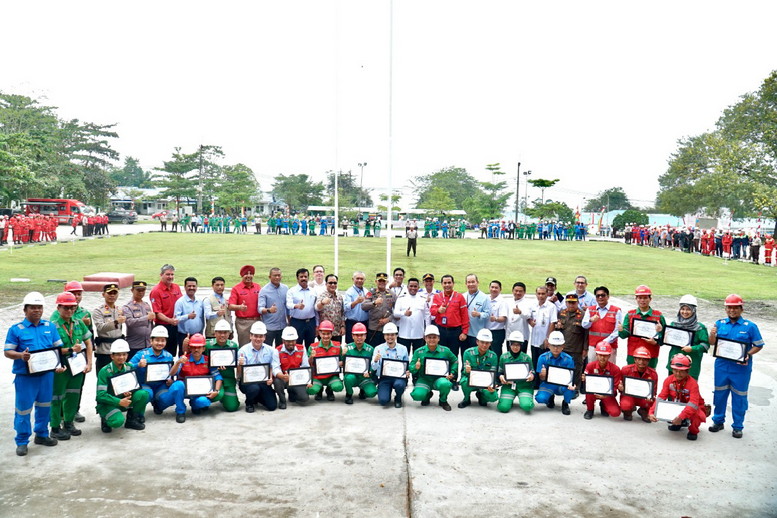 Usai pelaksanaan apel, orang nomor satu di Kabupaten Pelalawan, Zukri, didampingi COO Mill Operation, APRIL Group Eduward Ginting, berkesempatan memberikan penghargaan pada tiap departemen yang ada di perusahaan tersebut, yang telah turut komitmen dalam menjaga K3 di lingkungan departemennya masing-masing. ***(Adv)