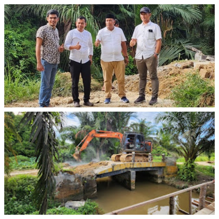 Juga terlihat alat berat perusahaan PT Musim Mas yang sedang melakukan pembongkaran jembatan sebagai cara membangun ulang jembatan yang melintasi sungai Batang Peagai tersebut. Nantinya jembatan baru akan dibangun untuk membantu kelancaran akses masyarakat.